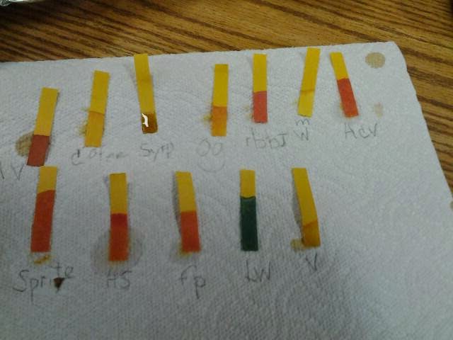 The second grade has worked on discovering what household liquids are acdic or basic. We had so much fun using apple cider vinegar, balsamic vinegar, soy sauce, ketchup, oil, milk , sprite, various juices, tobasco sauce, and even our saliva!